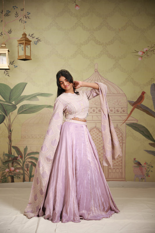 Lilac Falling Sleeve Lehenga