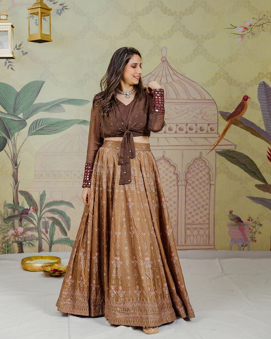Brown Printed Lehenga