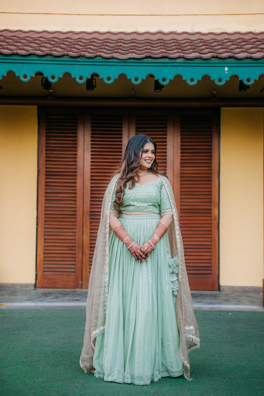 Green Monotone Lehenga