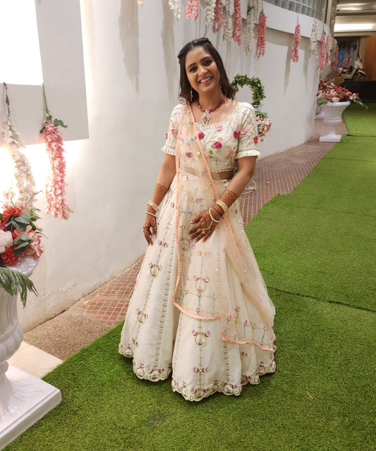 White Floral Embroidered Matching Lehenga-Girls