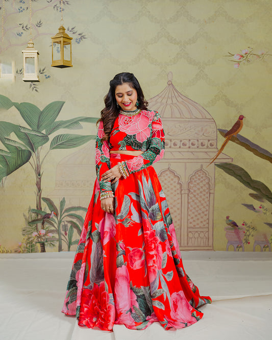 Payal and Zinal Red Floral Lehenga