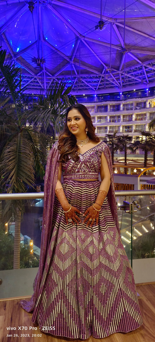 Purple Falling Sleeve Lehenga
