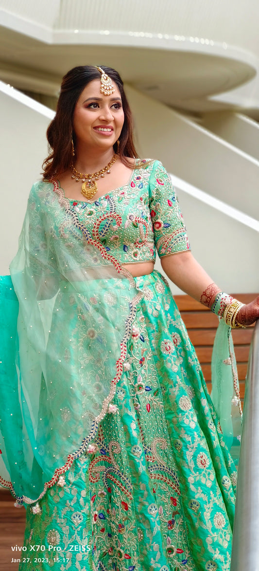 Green Zardosi Work Lehenga