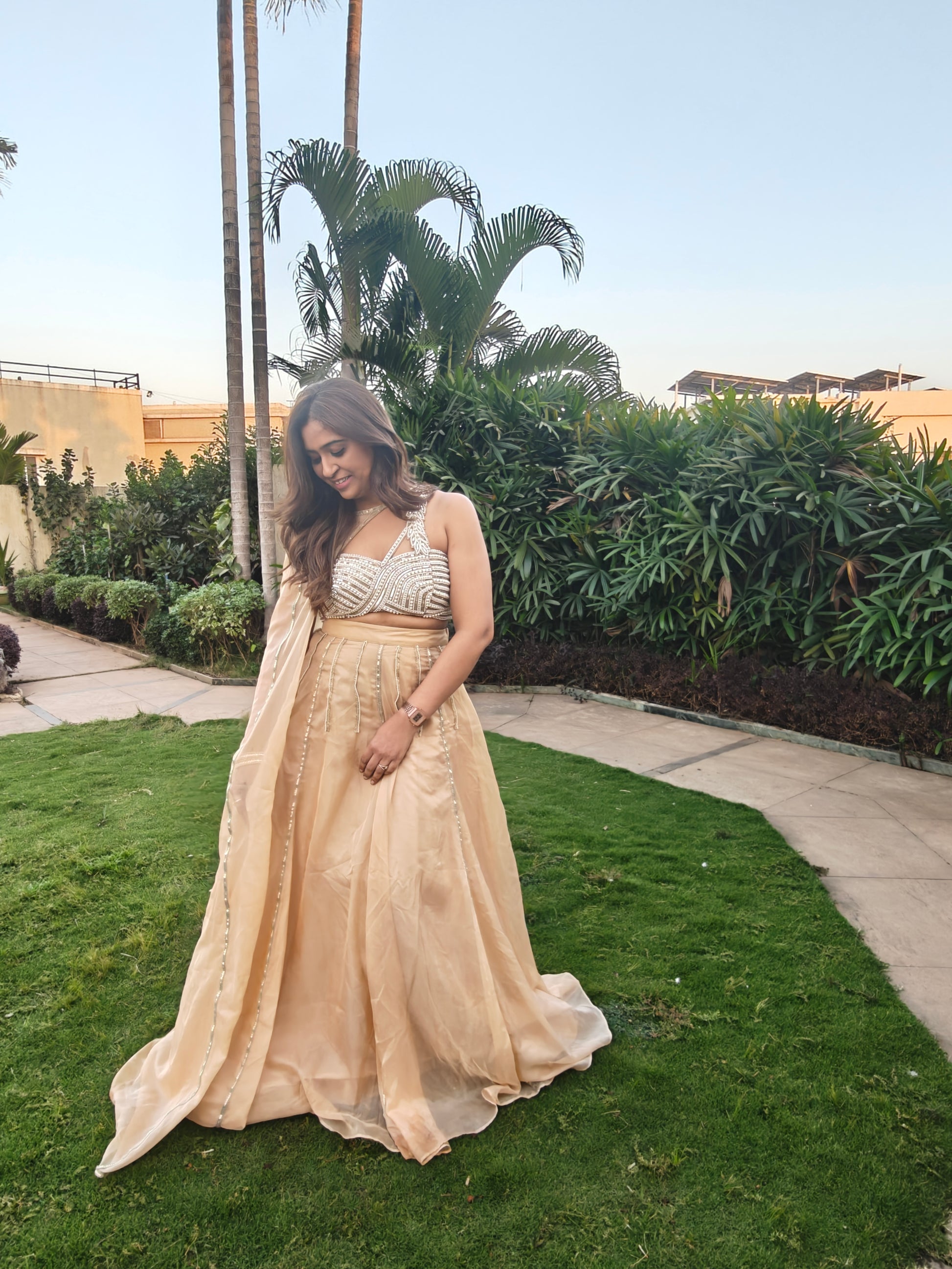 Beige Skirt with Pearl Blouse